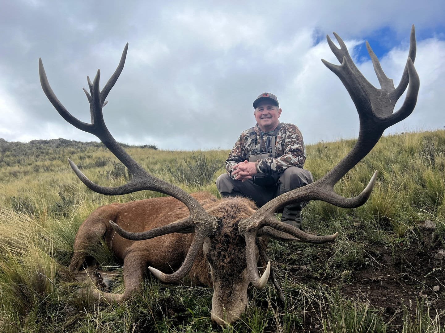 Combining mountains, lakes and hills, the Andes lodge is a 14,000 acres private land ranch with one of the best scenic views of the country. The hunt is usually on horseback. Once the animal is spotted, you will be stalking the trophy by walking to take the shot. We use Weatherby 30-06, Mark V rifles and average shots are 200 yards. The terrain is exceptional for bowhunting, hiking the edges Where you will be looking for a red stag shot at 40 yards. The lodge specializes in trophy red stag hunts with mature stags averaging 500+ SCI points.